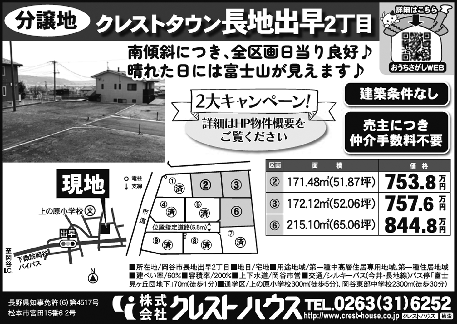 | 全6区画分譲~5月工事完了予定! 建築条件無し | |